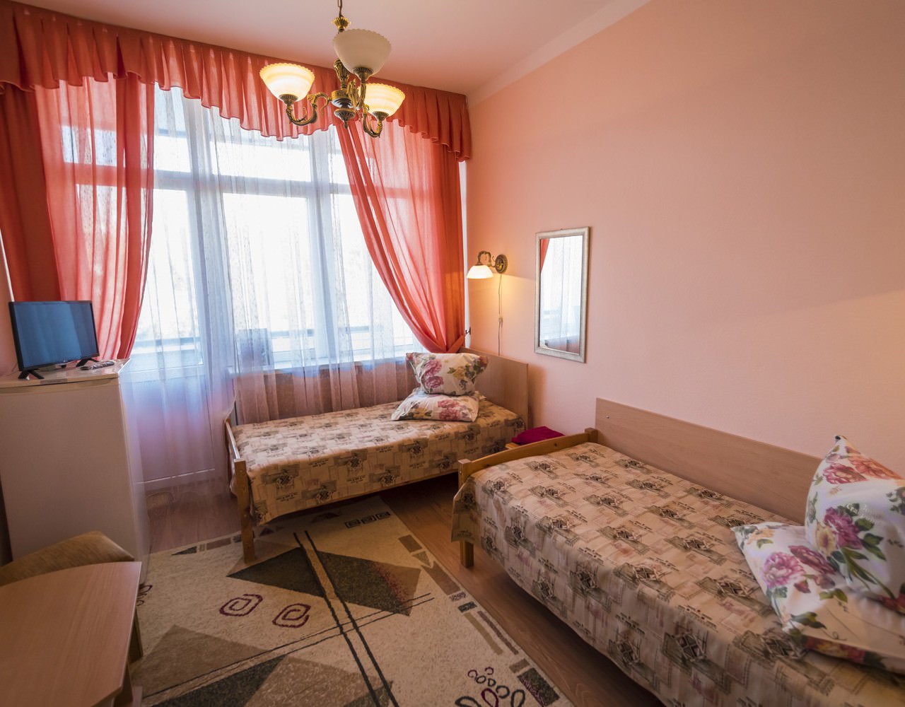 Все корпуса соединены теплым переходом, что позволяет отдыхающим получить лечебные процедуры не выходя из санатория. К услугам отдыхающих номера различных категорий со всеми удобствами. Проживать у нас могут не только взрослые, но и родители с детьми. Дети принимаются с 5 лет. Посещение бассейна строго с 7 лет.